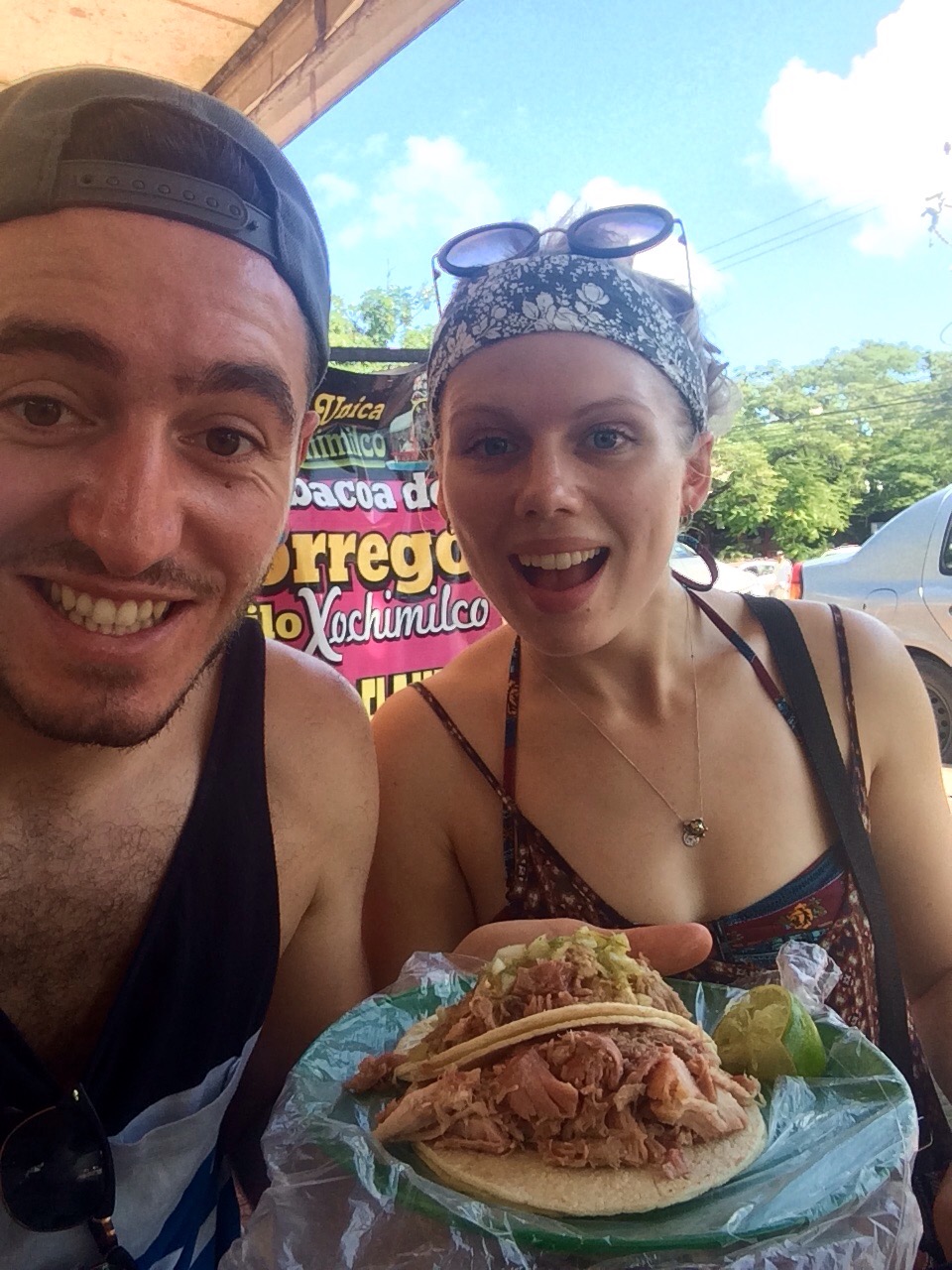 As we were still functioning on English time we were awake and ready for the day around 7am so decided to head out. With a limited number of days here we went and booked a tour for the next day to Chichen Itza before grabbing a very Mexican breakfast of Tacos, stuffed with what we think, and hope was some form of pork. There will be a theme throughout this blog that all exotic, spicy, local or unusual food eaten will be by Jonny and Jonny alone, Hayley this time opted to watch and video the process before grabbing some fruit from the supermarket.
