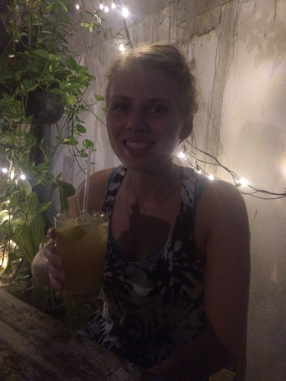 It was late afternoon so a stroll around the town and the sampling of a few bars was in order. The town itself is spread along a short strip of the main roaD with a number of small extended side streets here and there all filled with the usual tourist shops, tacos stalls, supermarkets and restaurant/bars. We opted for one such place called ‘Banteys’ owned and run by a pleasant but foul smelling local who told us that the place was specifically a mojito bar. Hayley, being the adventurous sole she is in all aspects of food and drink requested a Vodka and orange juice, to her credit he told us this wold be made by orange syrup using the sugar cane used in the endless list of Mojitos served here. Jonny went for the highly recommended Passionfruit mojito and was enjoying said drink when Hayley declared she wasn’t a fan of hers and like a begrudged parent, swapped with her. After the drinks across the road a local italian restaurant caught our eye and we enjoyed a pair of brilliant pasta dishes, one with prawns and courgette in a creamy tomato sauce and the other a vegetarian number.