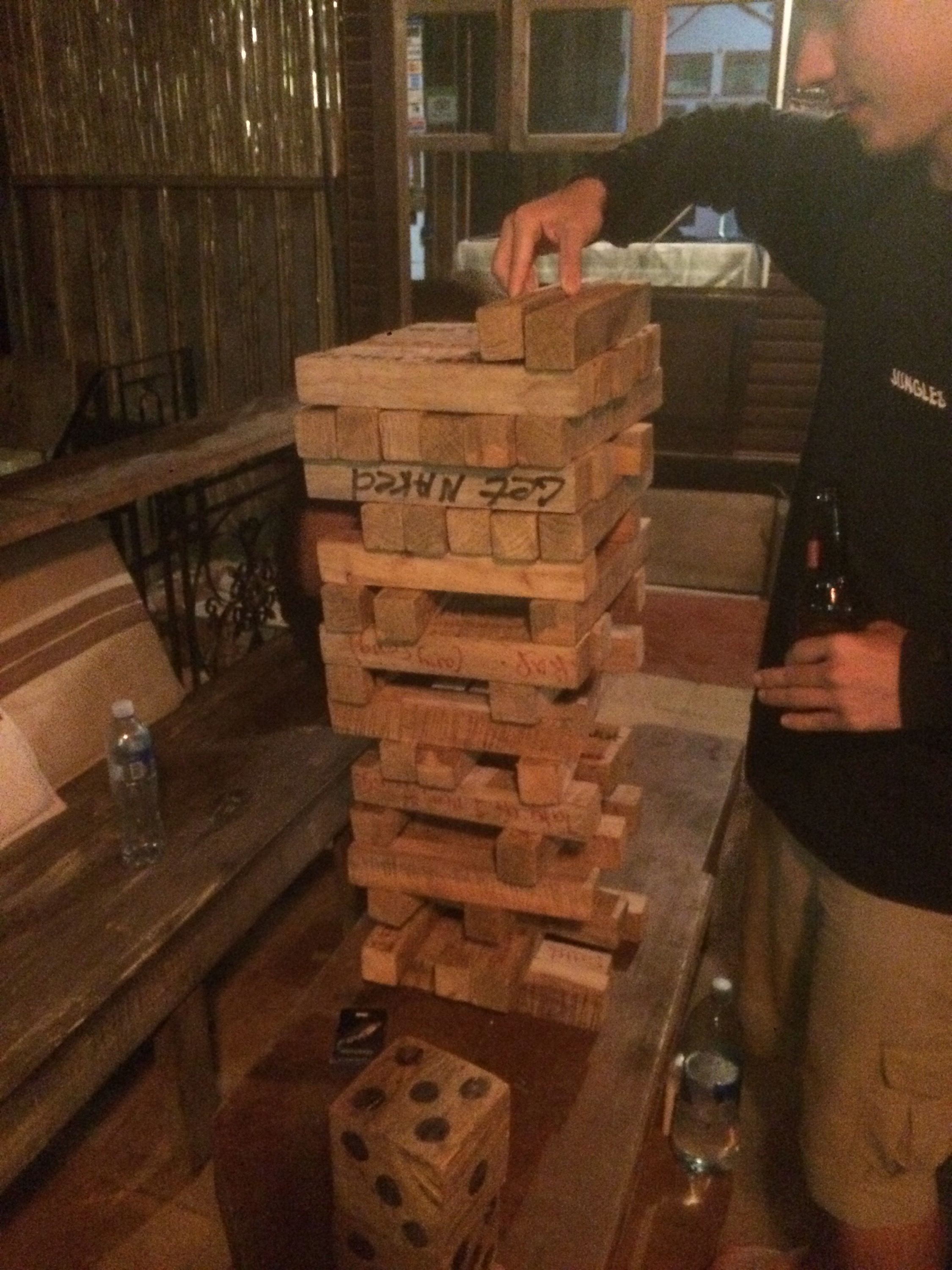 Amused and plauged by the dog incident we went back to the bar and spent the rest of the evening chatting, drinking, playing cards and a giant jenga game.