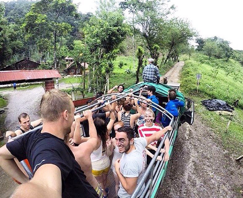 The morning came and after a damp insect infected sleep we were glad for it. We changed, packed our day bag and headed up for some breakfast while we waited for the bus. It arrived in true Guatemalan style, twenty minutes late, and we were greeted by what we thought was surely some sort of cruel joke the guides were playing on us. Now when you hear of travellers describing transportation as ‘chicken wagons’ in reality they are just old, run down buses that they cram people into, whereas this, this was a real chicken wagon. Complete with cage. We joined probably 20+ others and hopped into the back. Gripping on for all our lives were worth we headed off, back along the worlds worst, most pot hole filled road to our destination.