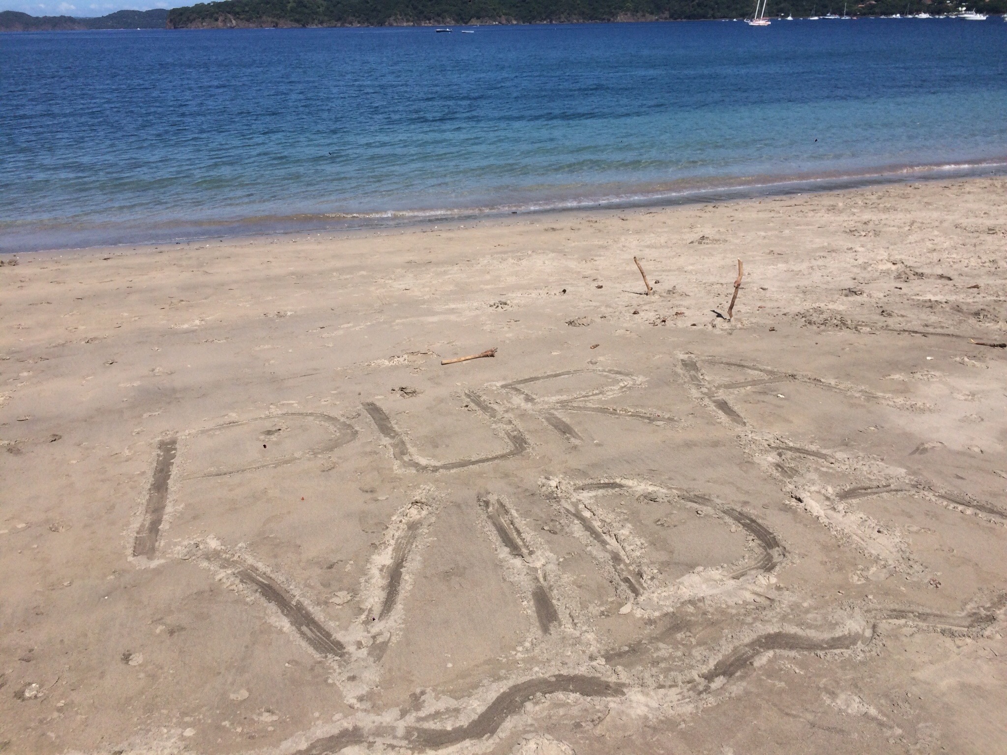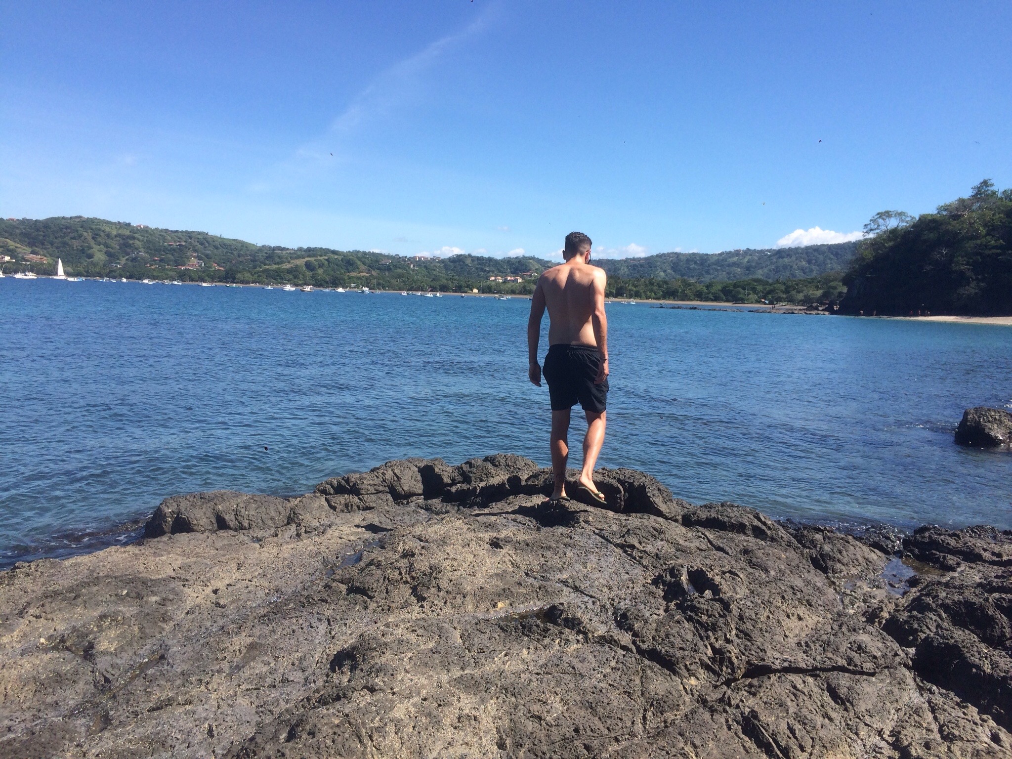 We awoke suffocated by heat trapped in our room and desperate for air. Promptly we were showered and ready for the beach. Although the town wasn’t to our taste, the beach at CoCo is undeniably beautiful. We decided to go for a stroll away from the main strip that both locals and tourists had towel marked territories. The sun seeped through our pores and the ocean tickled our feet as we clambered across rocks, dodging crabs and sharp shells. Twenty minutes later we were dodging the football of some young local boys on a lonesome strip of sand, with just a handful of native Costa Ricans-mostly children. ‘PURA VIDA’ was engraved into the sand, the famous motto of this laid back country.