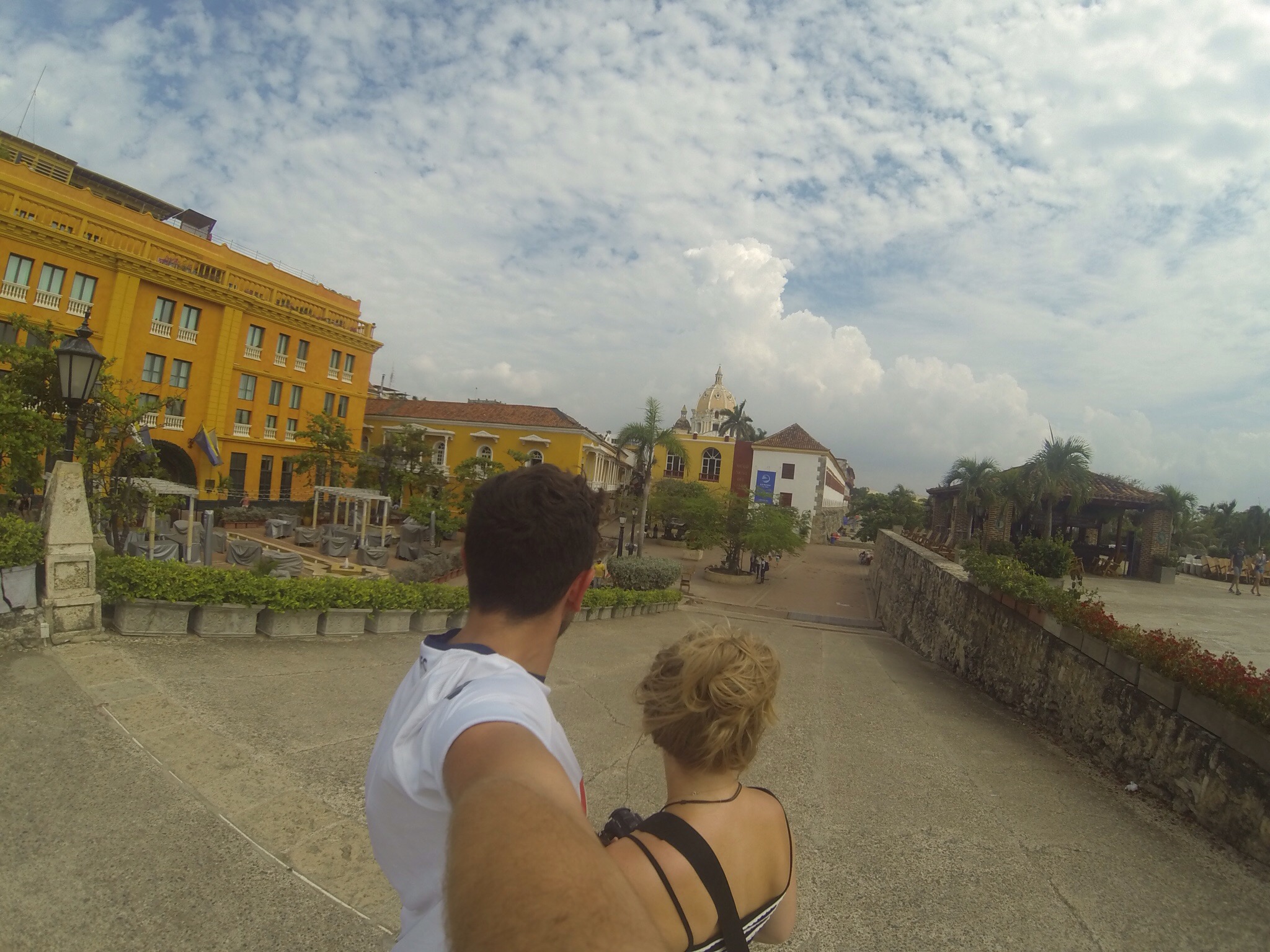Arriving in cartagena was a relief, after spending a night on the airport floor we were desperate to get straight into bed for a morning nap. We fantasised on the way to the hotel, our backs oozing into the mattress, necks caressed by the cushions as we would lull into a tranquil sleep. Of course this didn’t happen because when you are travelling the elements whether they be natural or materialistic, they like to challenge every inch of your persona by working forcefully against you, ensuring that nothing goes to plan. It was 10am and check in was not until 3pm and there was no way of getting into our room. Hayley’s sleep deprived brain had no emotional function left, her bloodshot eyes were too dry for tears and her mouth couldn’t find a sentence to express such despair. She was as useless as a phone with a dead battery and no charger in sight. Jonny had the task of recharging Hayley, whilst feeling energy-less himself. We found a french creperie serving breakfast, and whilst Jonny quickly demolished his, it was like Hayley was using up a percentage of dying battery on every bite. Zombiefied she could barely engage in a conversation. After killing a few hours we headed back to the hotel and set up a camp in reception, watching a film on the ipad. It was like waiting for paint to dry. Finally at around 2.30pm we were infomed our room was ready. Hayley’s eyes lit up, a sign of life appeared in her reaction as she moved faster than she had been able to all day. She was asleep before Jonny had even taken his bag off. A few hours later an attempt to gently awake Hayley was useless and so Jonny resorted to shaking her until she drowsily and then grumpily awoke. Unimpressed with his method of choice.